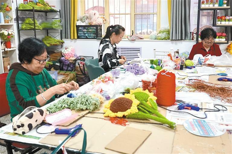 如今,一支以妇女为主体的超千人的钩编队伍已然成型,覆盖全市50余个社区(村)。
